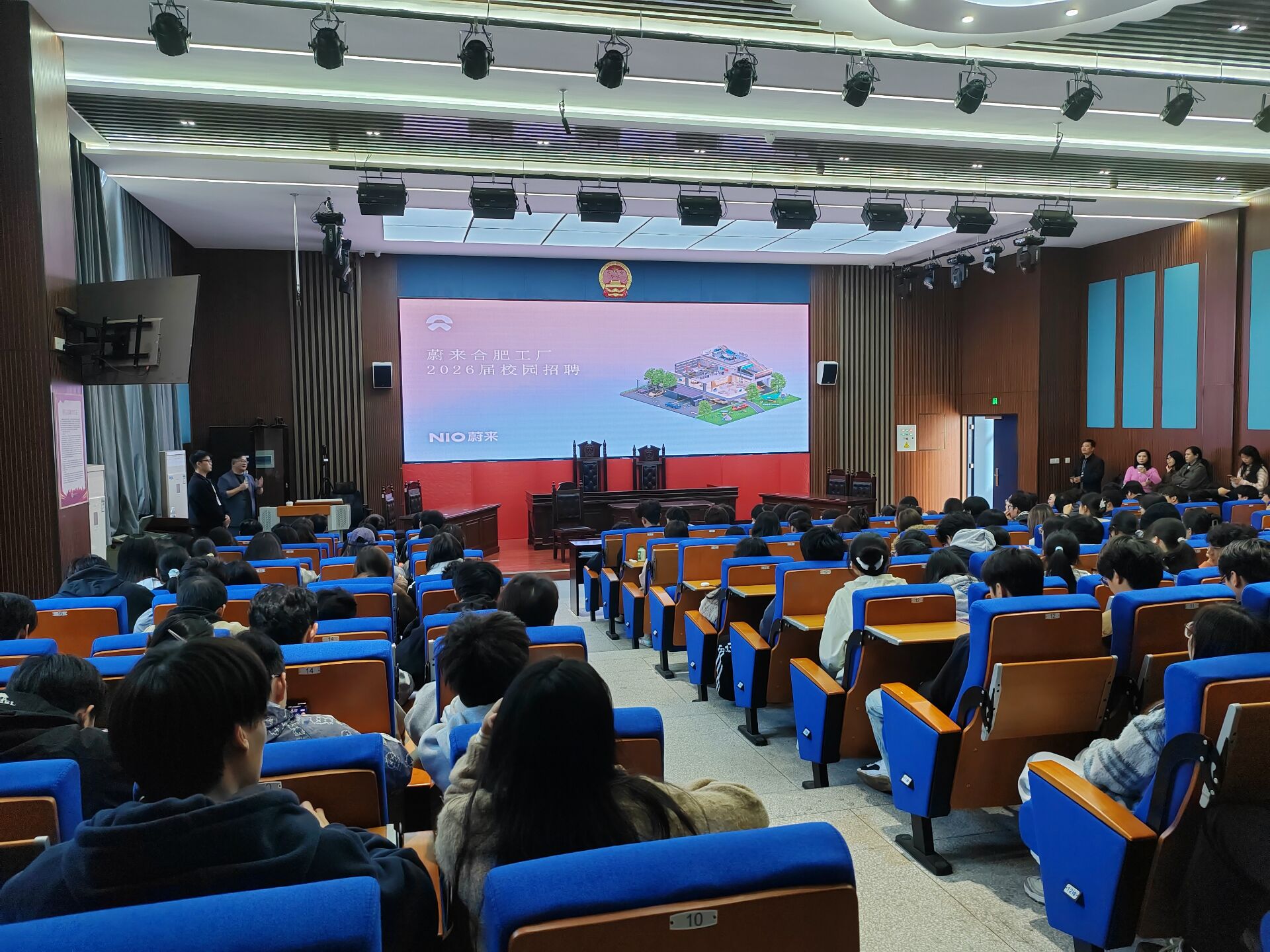 10月22日下午,全球领先的智能电动汽车企业蔚来汽车合肥工厂走进我校汽车应用与轨道交通学院,在北教学楼开展了校园专场招聘宣讲会。此次宣讲会吸引了该院23级城市轨道交通专业的全体学生参加。