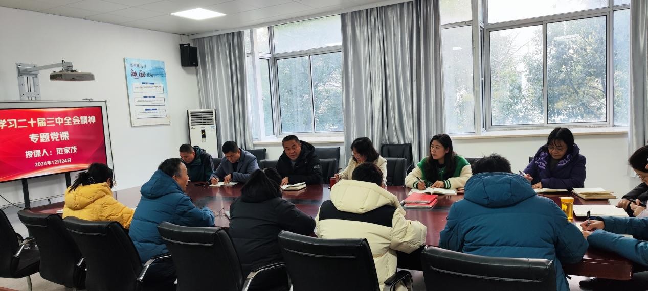 为深入贯彻落实党的二十届三中全会精神,进一步提高党员同志的思想认识和政治站位,12月24日下午,建筑工程学院举办了“学习贯彻党的二十届三中全会精神”专题党课活动。本次活动特邀校党委委员、副校长范家茂授课。该院党政班子、各支部书记、委员和科室负责人参加了活动。